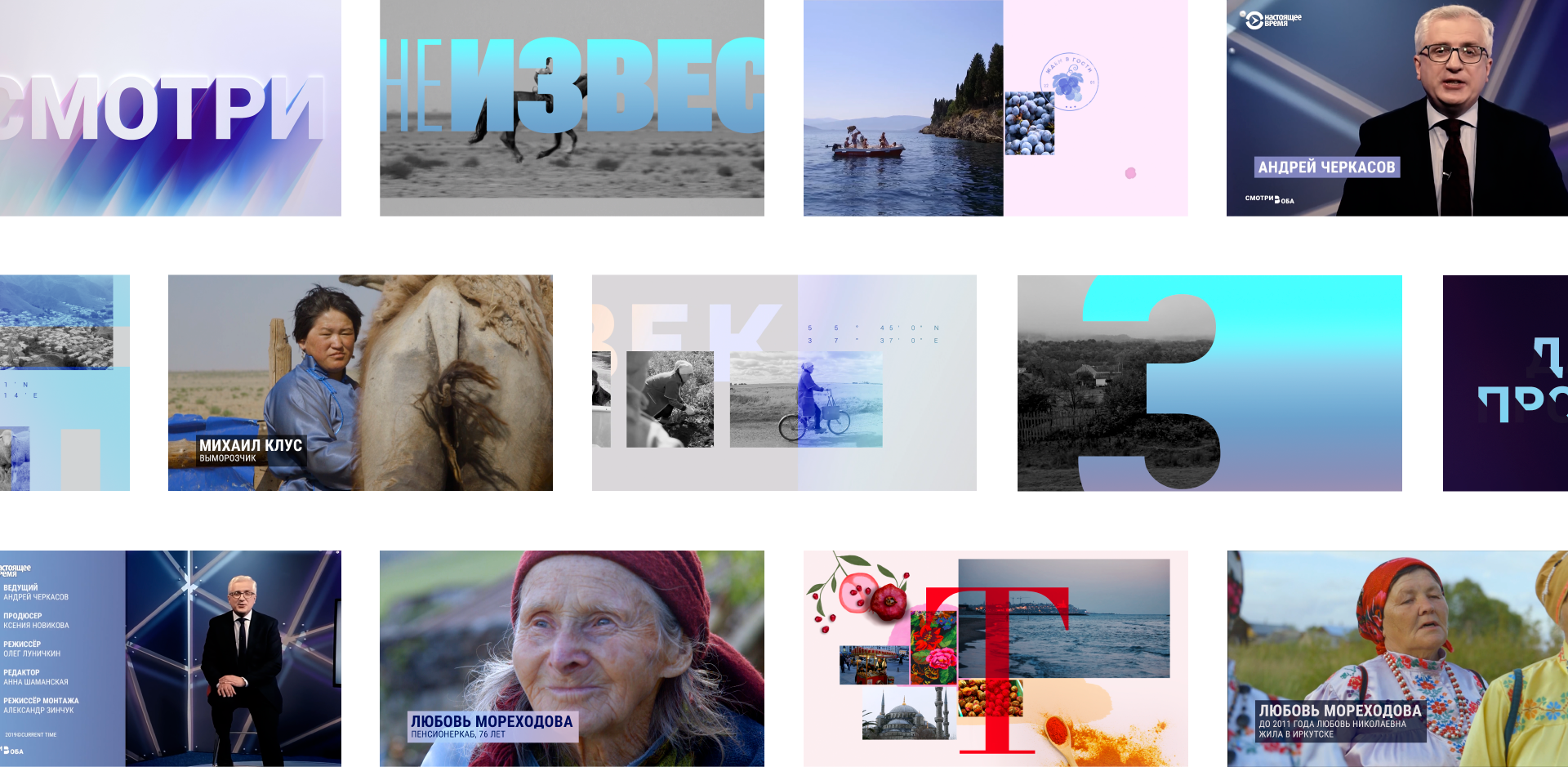 The documentary series explores extraordinary places and people in Russia. Unknown Russia portrays the country in a new light, unfamiliar even to Russian natives. Made entirely with original footage, the opener reveals fascinating scenes and portraits. The colorful typographic animations merge with all sorts of black and white tinted images to create an inspiring teaser for the program.